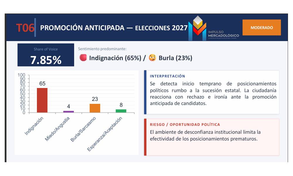 El análisis también detecta señales tempranas del posicionamiento político rumbo a las elecciones de 2027, un fenómeno que ya genera reacciones críticas y burlas entre usuarios de redes sociales, reflejo del ambiente de desconfianza hacia la clase política.