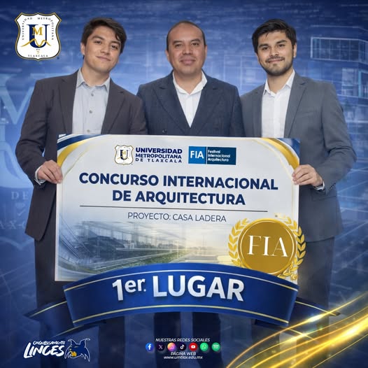 La Universidad Metropolitana de Tlaxcala (UMT) destacó a nivel internacional luego de que los estudiantes Rafael Romano González y Pablo Rubén Flores Ramírez, del octavo cuatrimestre de la Licenciatura en Arquitectura, obtuvieran el primer lugar en el Concurso Internacional de Arquitectura FIA 2025.