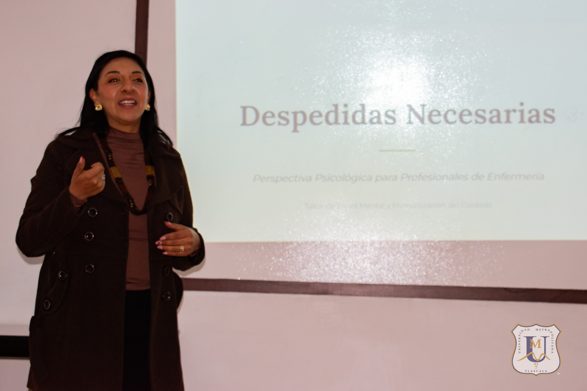 Estudiantes de la Licenciatura en Enfermería de la Universidad Metropolitana de Tlaxcala (UMT), perteneciente al Sistema Incorporado a la UNAM, participaron en una clase dual titulada “Pérdidas necesarias en el ser humano”, impartida dentro de la asignatura Cronicidad y Tanatología por la maestra Rocío Arana Aguilar.