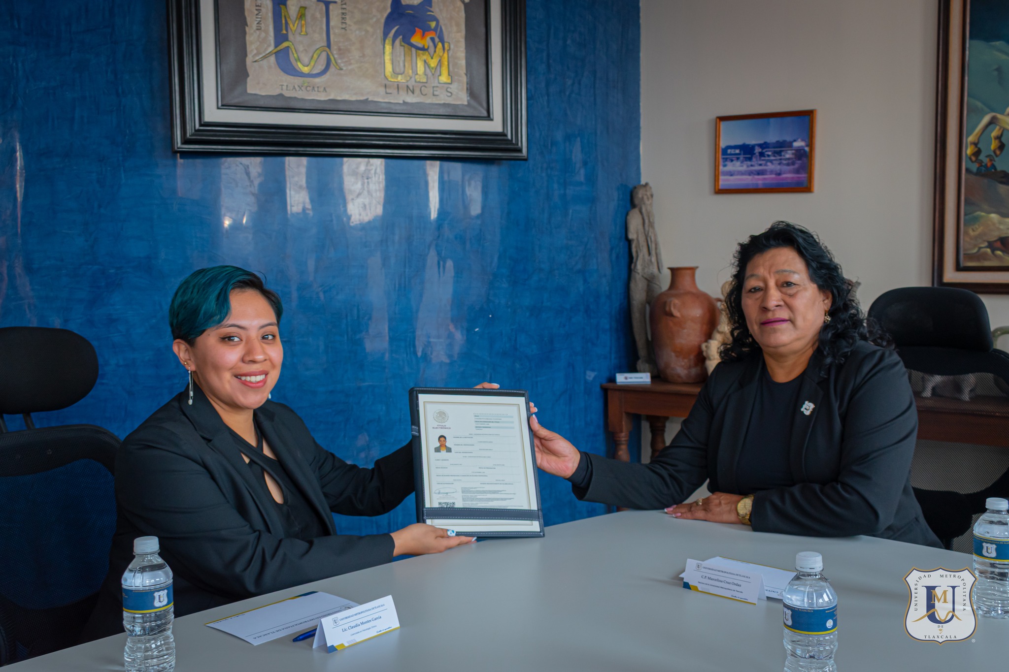 Durante una ceremonia realizada en la institución, la rectora Marcelina Cruz Ordaz entregó el documento que acredita su formación universitaria, destacando el esfuerzo, la disciplina y la dedicación que la egresada demostró a lo largo de su trayectoria académica.