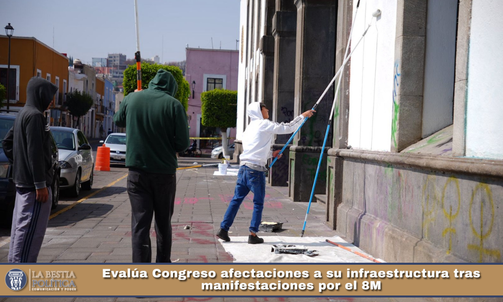 Tras las manifestaciones registradas este domingo 8 de marzo con motivo del Día Internacional de la Mujer, autoridades y personal del Congreso del Estado realizaron un recorrido de supervisión para evaluar las afectaciones ocasionadas en el “Palacio Juárez”, sede oficial del Poder Legislativo local, y confirmaron que las actividades legislativas y administrativas programadas continuarán con normalidad.