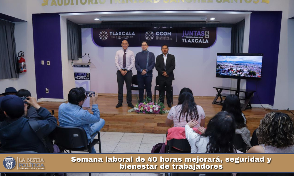 Informó que la reforma constitucional que reduce la jornada de trabajo a 40 horas semanales fue aprobada por las cámaras de Senadores y Diputados, y al menos 24 congresos locales -entre ellos el de Tlaxcala-, cumpliéndose el requisito para su constitucionalidad, por lo que este año comenzará el período de adaptación para las unidades económicas.