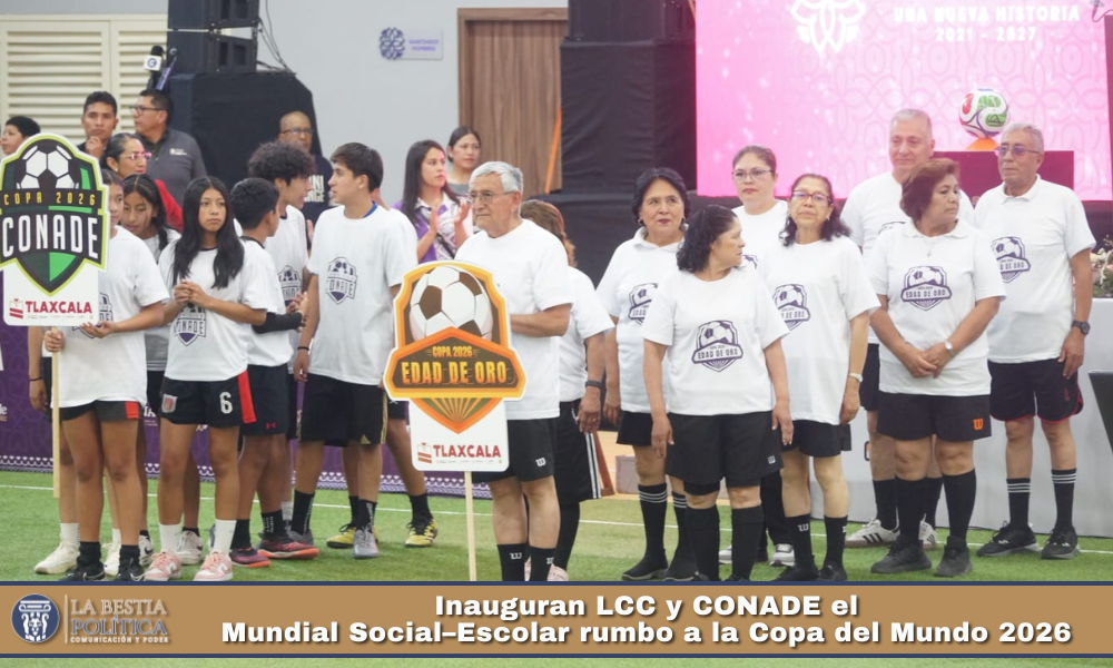 Demian Márquez | La gobernadora de Lorena Cuéllar Cisneros encabezó la inauguración del Mundial Social–Escolar Tlaxcala 2026, iniciativa impulsada por la presidenta de México Claudia Sheinbaum Pardo para promover el deporte entre niñas, niños y jóvenes rumbo a la Copa Mundial de la FIFA 2026.