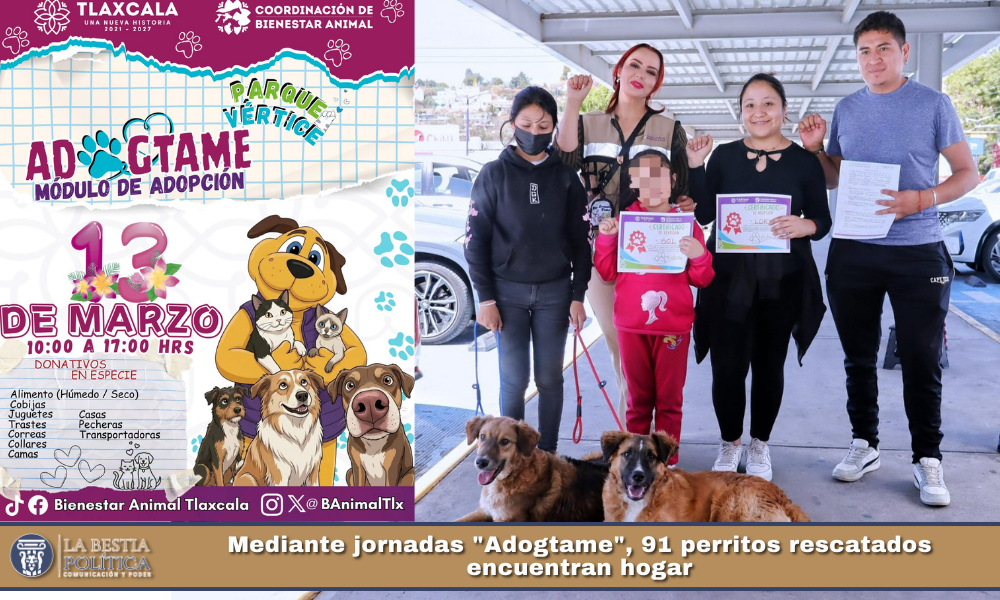 Con estas acciones, el Gobierno del Estado busca promover la adopción responsable y fortalecer una cultura de protección y trato digno hacia los animales en Tlaxcala.