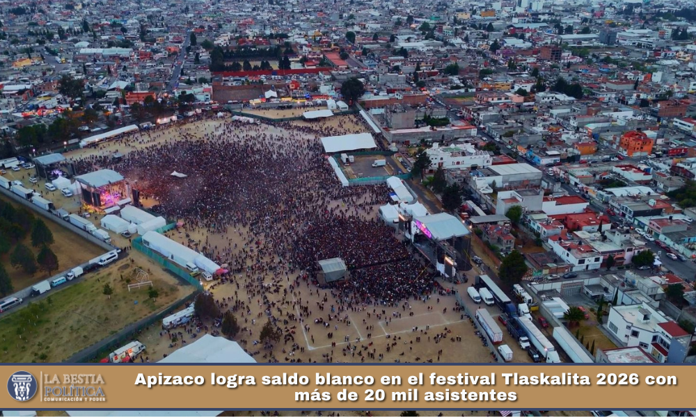 Por instrucciones del presidente municipal, Javier Rivera Bonilla, el Ayuntamiento de Apizaco desplegó un operativo integral de seguridad durante la realización del Festival Tlaskalita, llevado a cabo en el Parque Andén en el marco de la Feria de Apizaco 2026, el cual concluyó con saldo blanco y una asistencia superior a las 20 mil personas.
