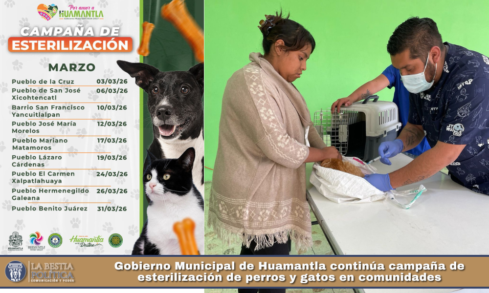 Como parte de estas acciones, se informa a la ciudadanía que las próximas fechas serán el 19 de marzo en la comunidad de Lázaro Cárdenas y el 24 de marzo en El Carmen Xalpatlahuaya, donde se brindarán esterilizaciones gratuitas para perros y gatos, tanto machos como hembras, a partir de los tres meses de edad, en un horario de 9:00 a 13:00 horas.