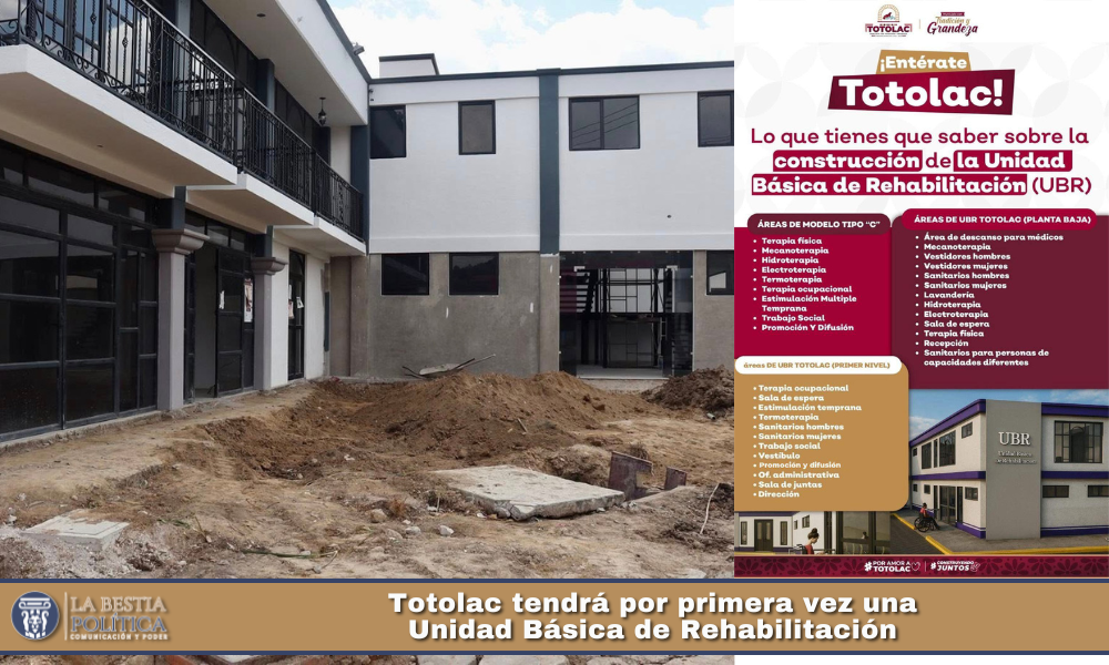 El Gobierno Municipal de Totolac 2024–2027, encabezado por el presidente municipal, Ing. Benjamín Atonal Conde, impulsa la construcción de la primera Unidad Básica de Rehabilitación (UBR), una obra histórica realizada con inversión 100 por ciento municipal.