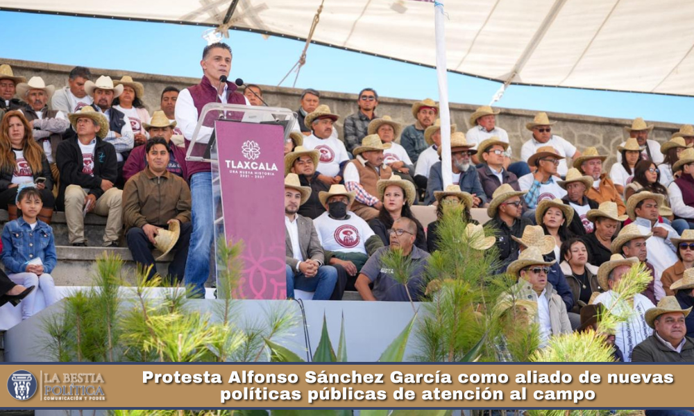En su calidad de presidente de la Asociación de Autoridades Municipales de Tlaxcala (AAMTLAX), el alcalde Alfonso Sánchez García rindió protesta, junto a presidentes municipales y comisariados ejidales, como aliado de las nuevas políticas públicas en defensa del campo tlaxcalteca, en el marco del Foro Regional Campesino realizado en Huamantla.