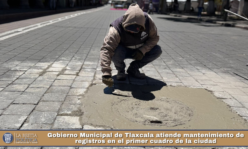 Por instrucciones del presidente municipal de Tlaxcala, Alfonso Sánchez García, brigadas de la Dirección de Obras Públicas continúan con trabajos integrales para la protección y mantenimiento de registros y alcantarillas en el primer cuadro de la ciudad, como parte de una estrategia para mejorar la infraestructura urbana y garantizar la seguridad de peatones y automovilistas.