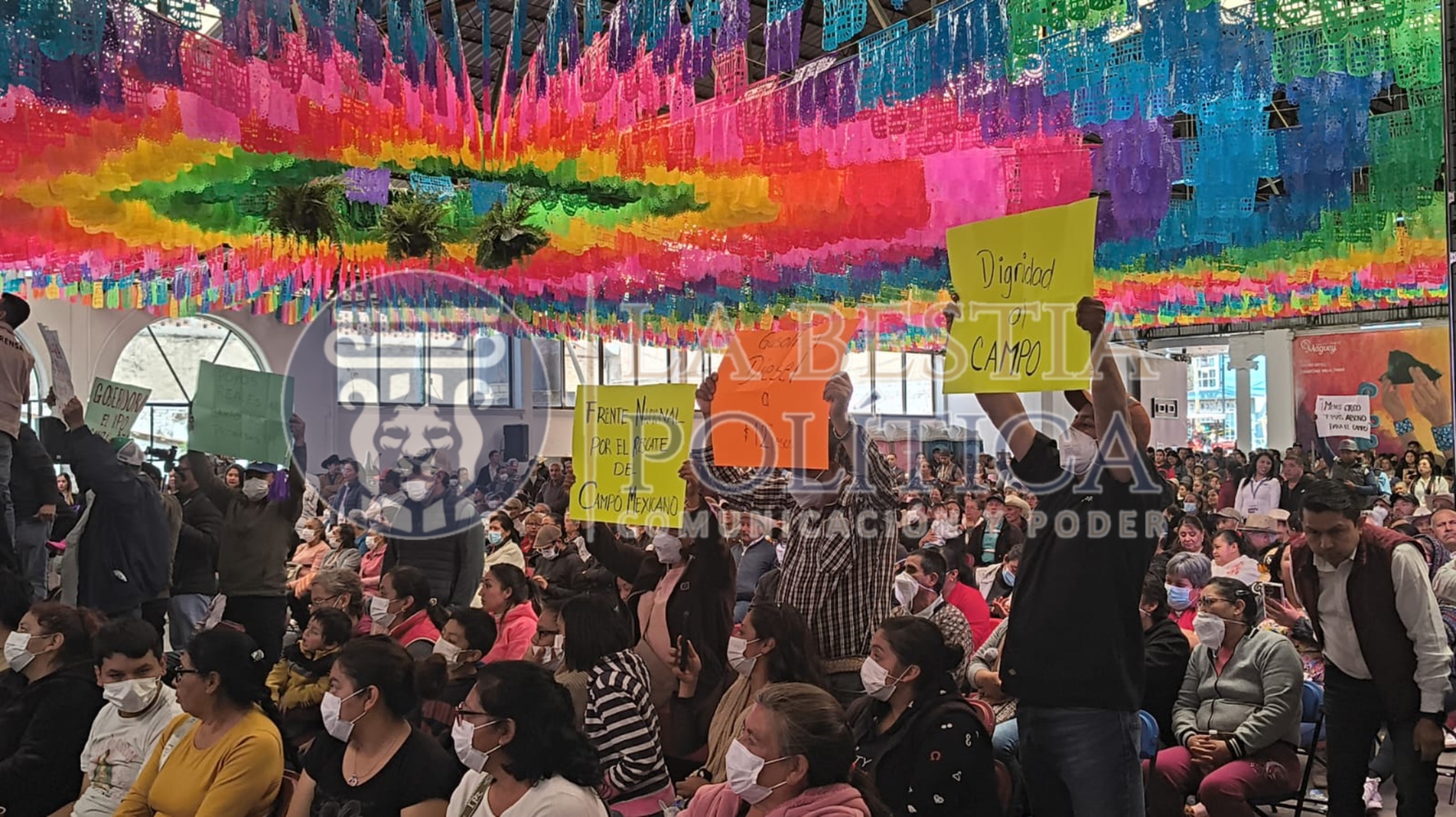 Mariana LOVERA// Durante los “Encuentros tlaxcaltecas” encabezados por la gobernadora Lorena Cuéllar Cisneros en Nanacamilpa, integrantes del Frente Nacional por el Rescate del Pueblo Mexicano se manifestaron para denunciar el incumplimiento del gobierno federal en la compra de su producción.