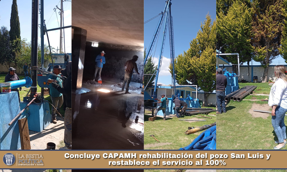La Comisión de Agua Potable y Alcantarillado del Municipio de Huamantla (CAPAMH) informa la conclusión de los trabajos de rehabilitación del pozo San Luis, acciones que permitirán mejorar la eficiencia hidráulica, la confiabilidad operativa y la continuidad del servicio en la red de distribución.