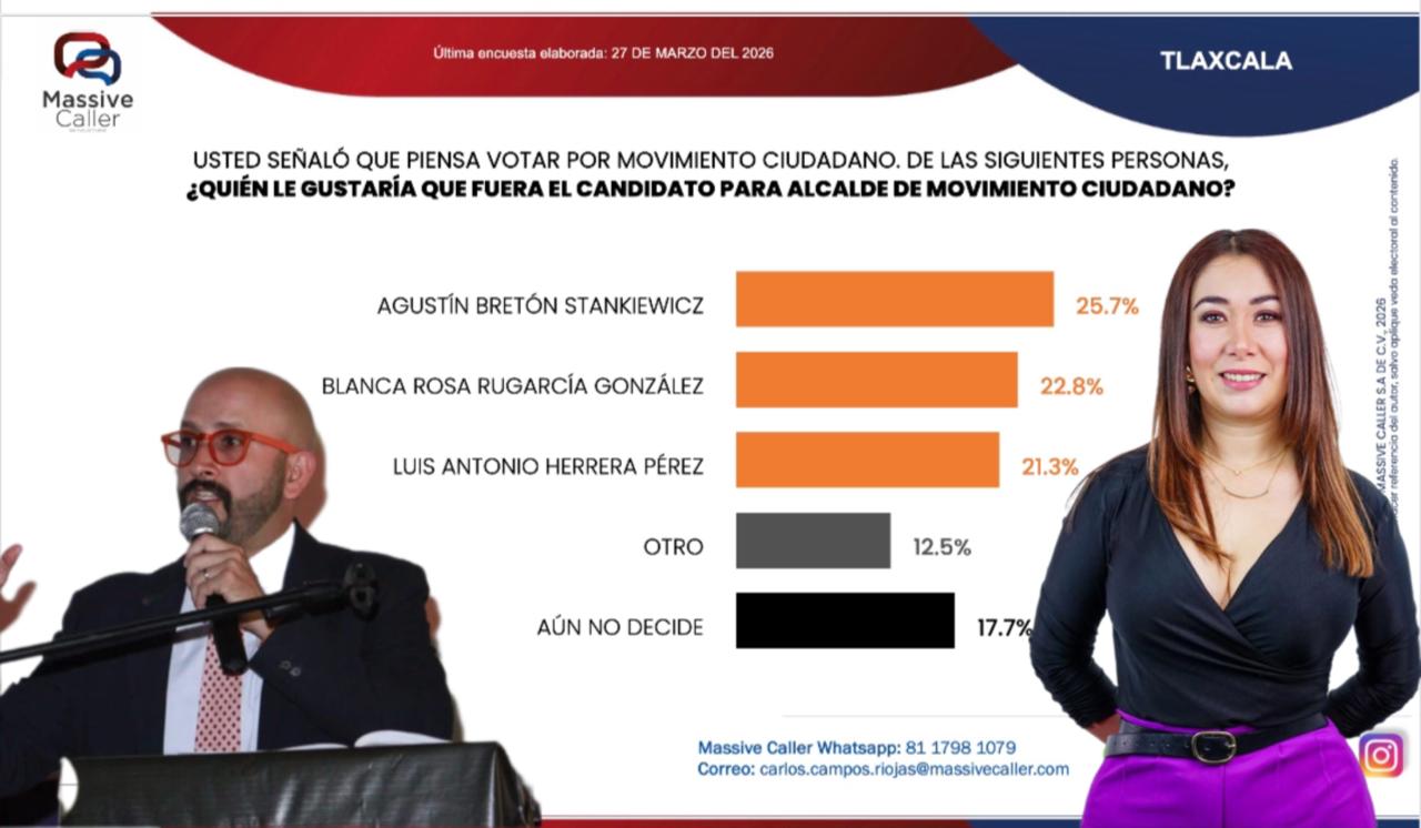 Mariana LOVERA | De cara a las elecciones para alcalde de Tlaxcala, programadas para el próximo año, una reciente encuesta de Massive Caller revela una ventaja de MORENA en la intención de voto, aunque con un amplio margen de indecisos. El sondeo también muestra el surgimiento de nuevos perfiles dentro de las preferencias ciudadanas, como el de Blanca Rosa Rugarcía González en Movimiento Ciudadano.