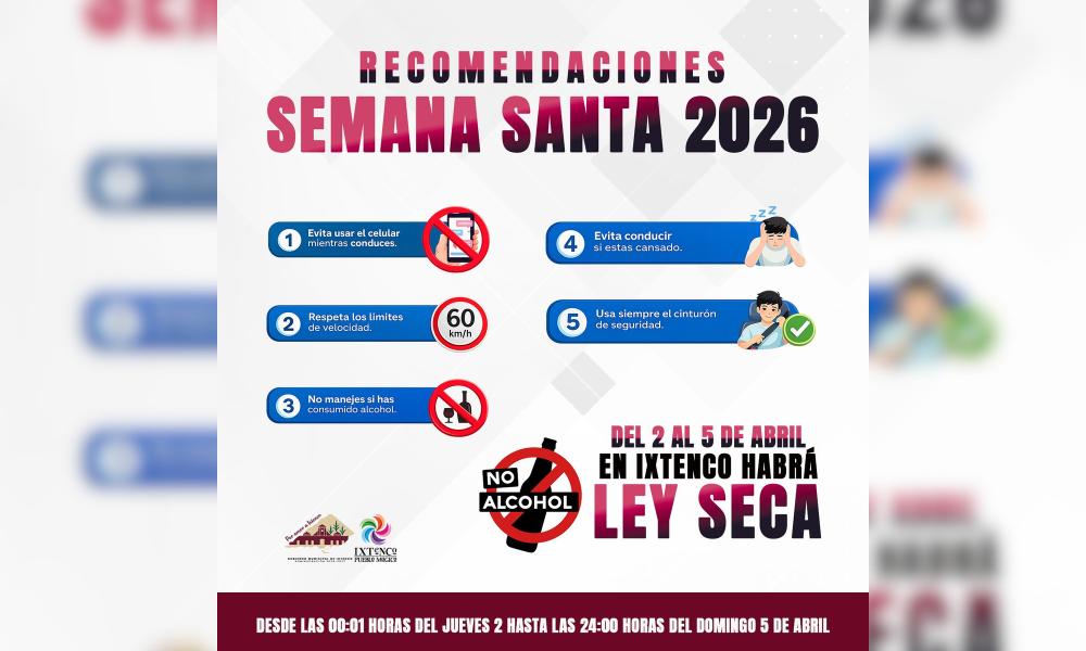 Con el objetivo de salvaguardar la integridad de las familias durante el periodo vacacional, el Gobierno Municipal de Ixtenco emitió una serie de recomendaciones preventivas en el marco del operativo Semana Santa Segura 2026 en la Zona Oriente.