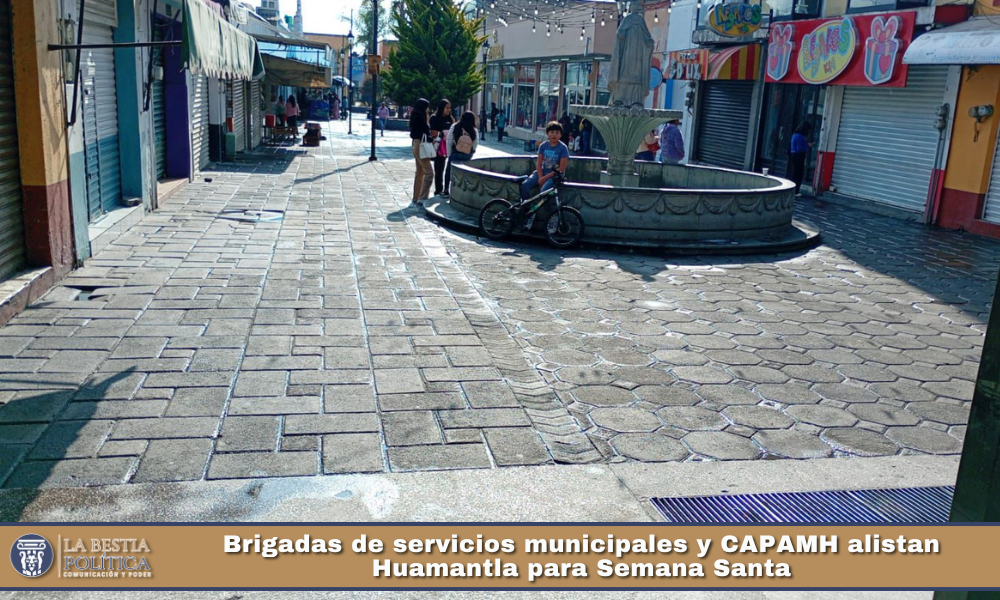 Como parte de los trabajos de preparación para recibir a visitantes durante esta temporada de Semana Santa, brigadas de Servicios Municipales, en coordinación con la Comisión de Agua Potable y Alcantarillado del Municipio de Huamantla (CAPAMH), realizaron labores intensivas de limpieza y mantenimiento en el parque principal y zonas turísticas.