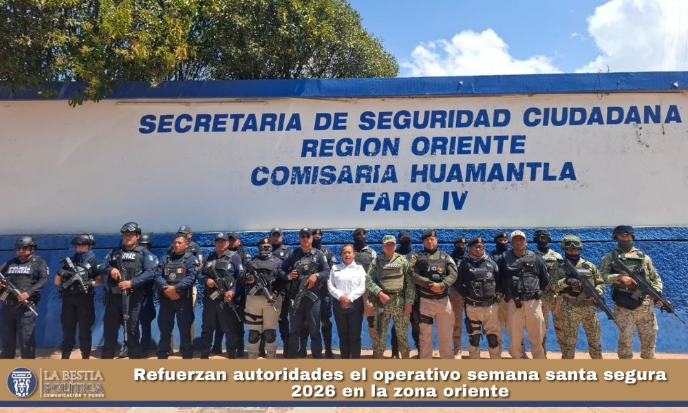 Como parte del Operativo Semana Santa Segura 2026 en la Zona Oriente, autoridades municipales, estatales y federales fortalecen las acciones de prevención, vigilancia y proximidad social en toda la región, con el objetivo de salvaguardar la integridad de las familias y visitantes durante este periodo vacacional.