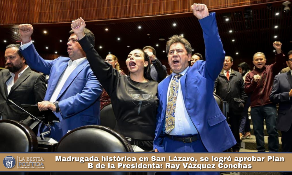 Ray Vázquez destacó que para la aprobación de la llamada reforma “Plan B” se contó con mayoría calificada en la votación particular, con 343 votos a favor de Morena con el apoyo de los grupos parlamentarios del PT, PVEM e incluso MC, y 124 en contra y una abstención del PRI y PAN.