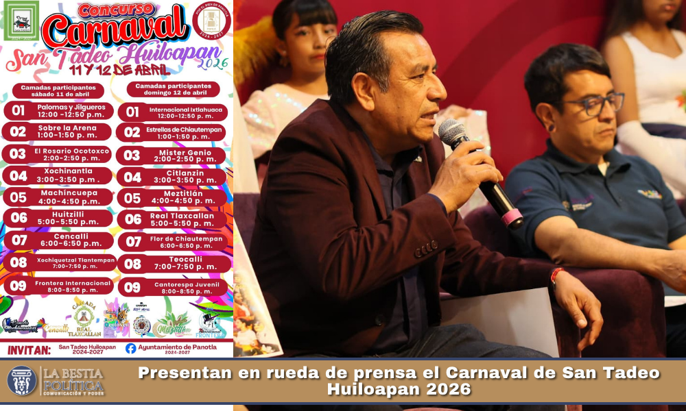 En rueda de prensa, autoridades municipales dieron a conocer los detalles del Carnaval de San Tadeo Huiloapan 2026, una de las festividades más representativas del municipio, que se llevará a cabo los próximos 11 y 12 de abril.