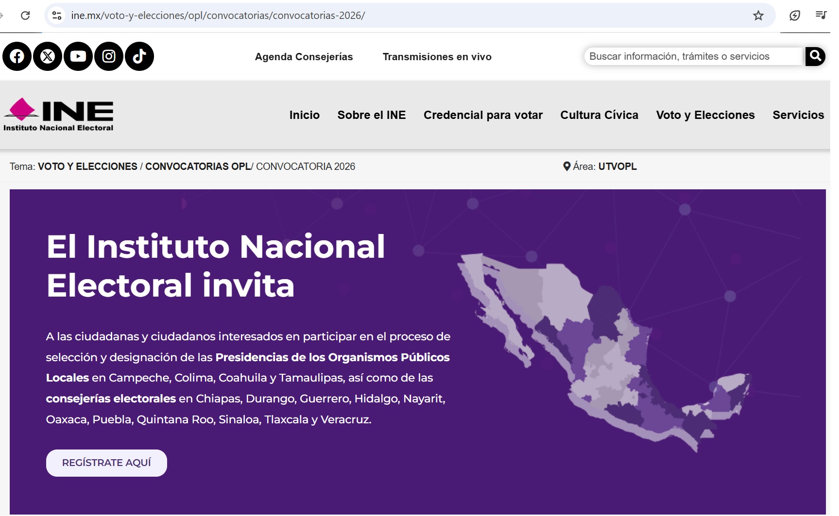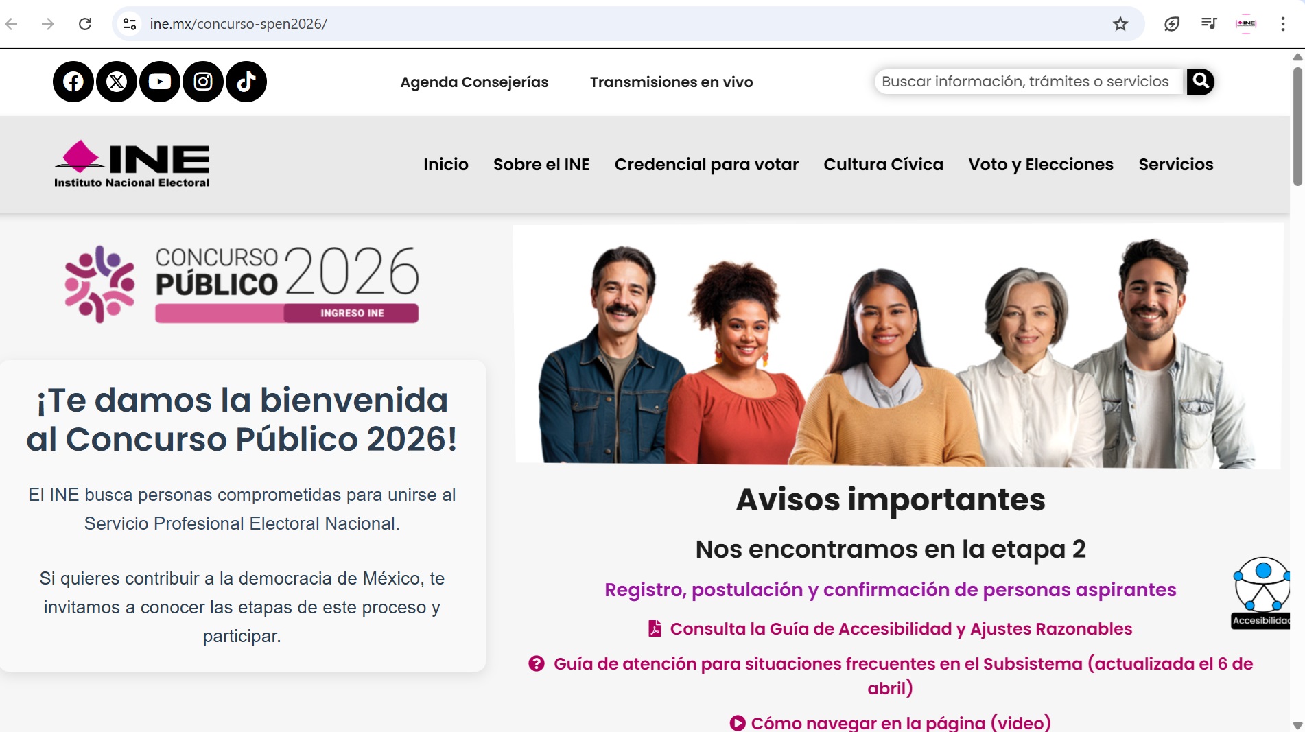Por otra parte, el registro para el Concurso Público 2026 del SPEN finalizará el 12 de abril, donde se busca ocupar 333 plazas para integrar el cuerpo de funcionarias y funcionarios que participarán en la organización del Proceso Electoral Federal 2026-2027.