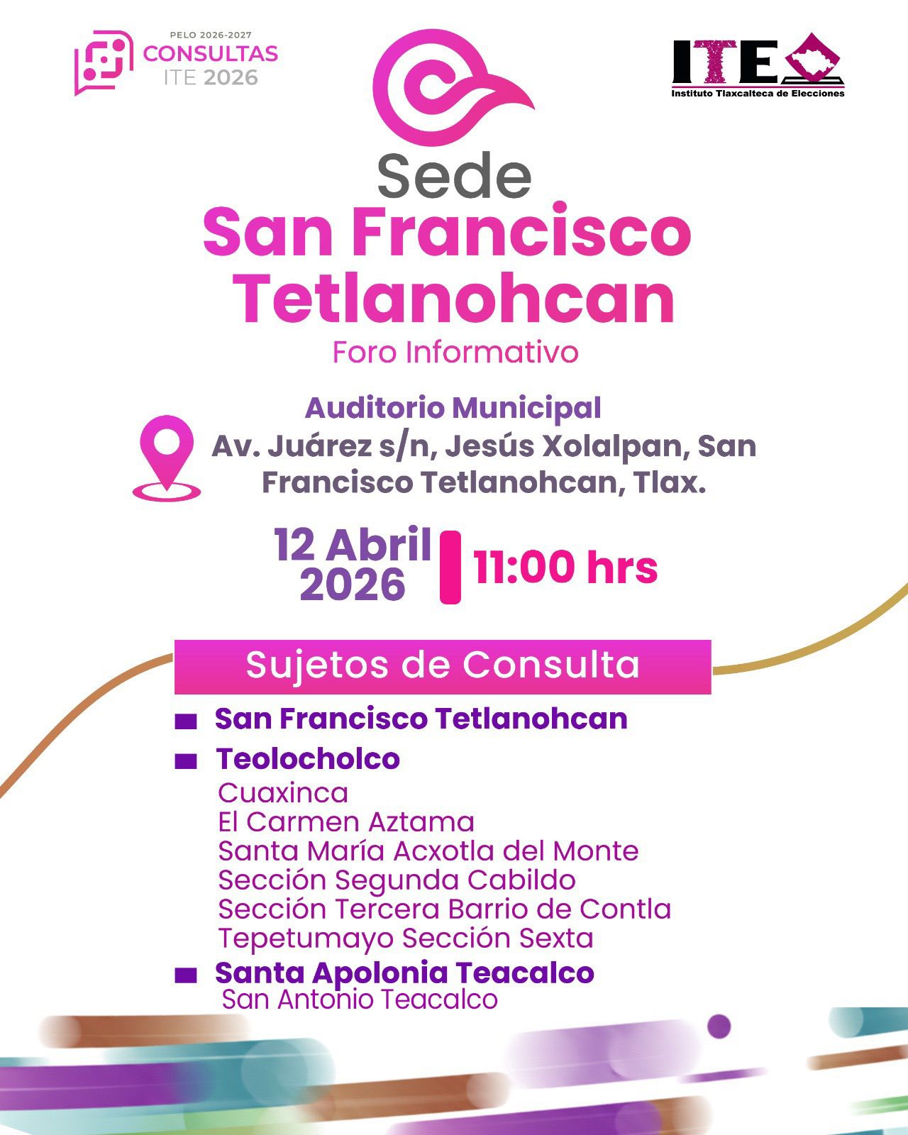 El Instituto Tlaxcalteca de Elecciones invita a la ciudadanía al Foro Informativo de la consulta previa, libre, informada y culturalmente adecuada, dirigido a personas, pueblos y comunidades indígenas del estado.
