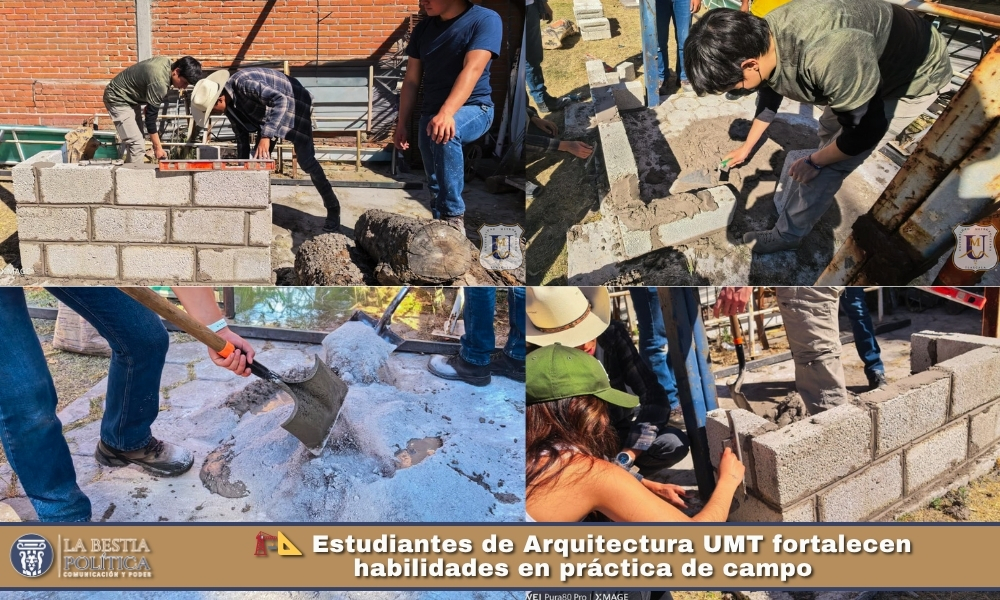Alumnos del octavo cuatrimestre de la Licenciatura en Arquitectura de la Universidad Metropolitana de Tlaxcala (UMT) llevaron a cabo una práctica de campo enfocada en procesos constructivos, como parte de su formación integral.