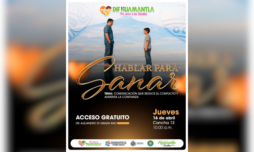 Con el objetivo de fortalecer los lazos familiares y promover entornos más armónicos en los hogares, el Sistema Municipal para el Desarrollo Integral de la Familia (SMDIF) Huamantla invita a madres y padres de familia a participar en la conferencia “Hablar para sanar”, que se llevará a cabo el próximo jueves 16 de abril.