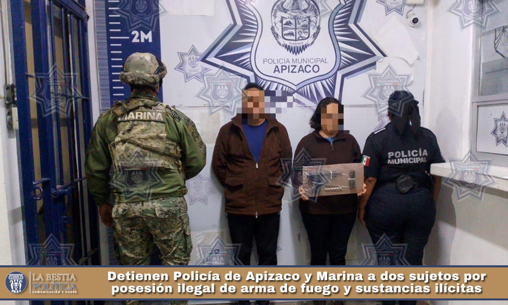 La Dirección de Seguridad Pública, Vialidad y Transporte de Apizaco informa que, como resultado de los recorridos permanentes de seguridad y vigilancia, elementos de esta corporación lograron la detención de dos personas por su probable responsabilidad en delitos contra la salud y portación de arma de fuego.
