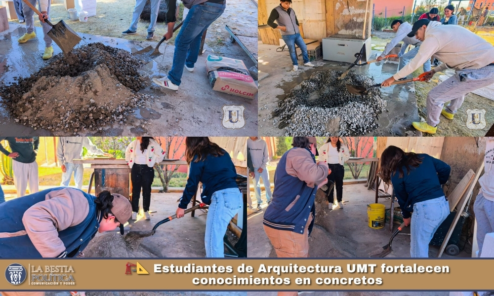 Alumnos del 5.º cuatrimestre de la Licenciatura en Arquitectura de la Universidad Metropolitana de Tlaxcala (UMT) realizaron una práctica integral sobre la elaboración y cuantificación de concretos, como parte de su formación académica.