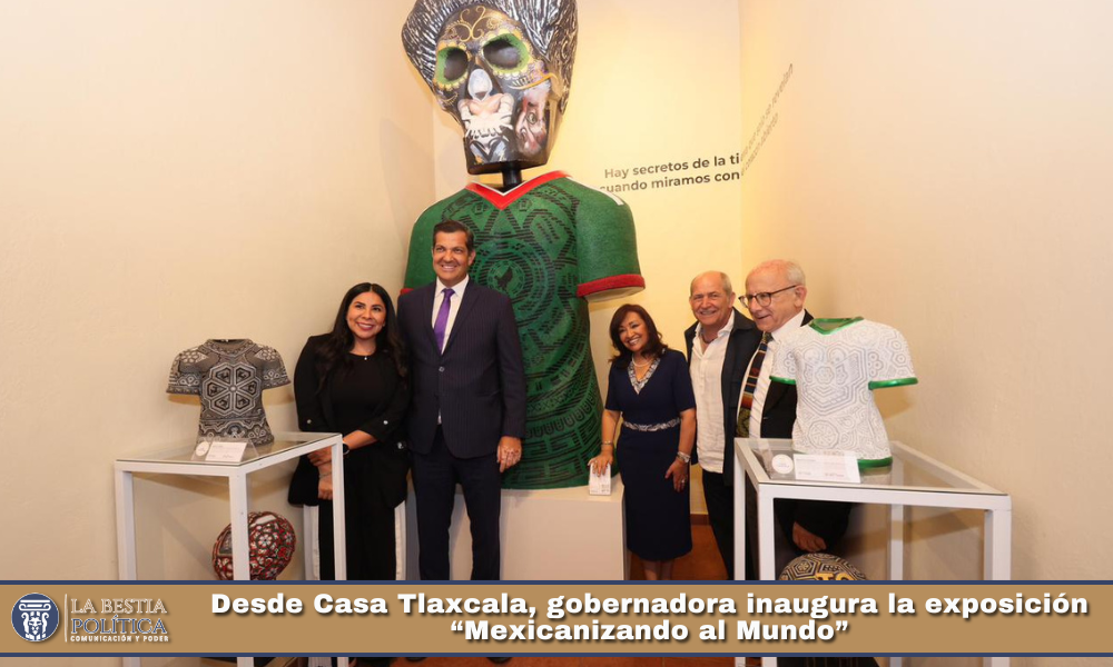 La gobernadora Lorena Cuéllar Cisneros encabezó la inauguración de la exposición “Mexicanizando al Mundo” en Casa Tlaxcala, ubicada en la Ciudad de México, donde destacó que esta muestra representa la esencia de México y fortalece la proyección cultural del estado a nivel nacional e internacional.