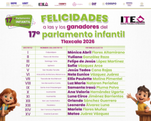 El Instituto Tlaxcalteca de Elecciones (ITE) entregó este miércoles las constancias que acreditan a las y los 15 niños y niñas que integrarán el Parlamento Infantil 2026 por la vía de mayoría relativa.