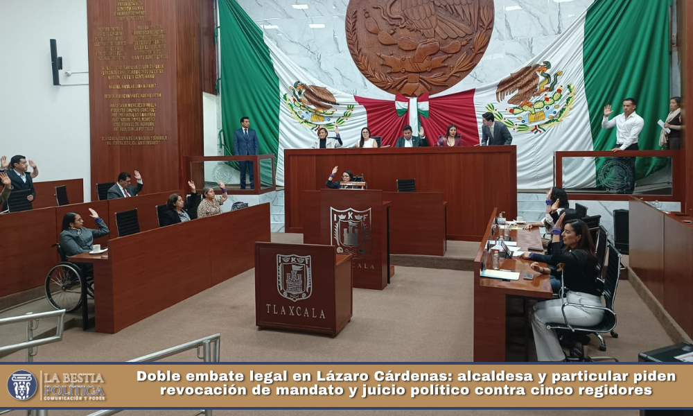 Mariana Lovera | La presidenta municipal de Lázaro Cárdenas, Elena Macías Díaz y el ciudadano Noé González Hernández presentaron dos solicitudes formales ante el Congreso de Tlaxcala para promover, por un lado, la revocación de mandato y, por otro, un juicio político en contra de cinco integrantes del ayuntamiento.
