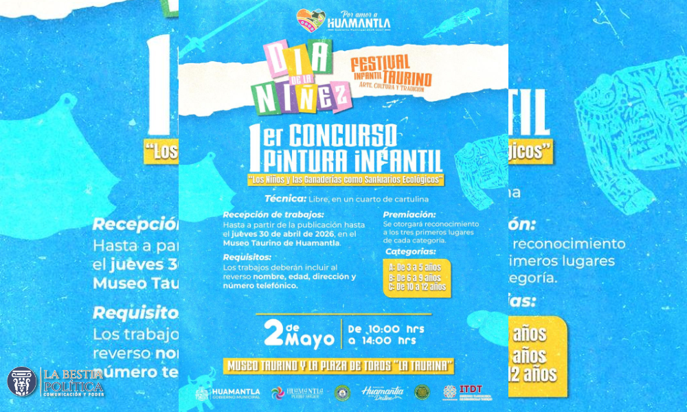 Con el objetivo de fomentar la creatividad artística en la niñez y promover la sensibilización sobre el entorno natural, el Gobierno Municipal de Huamantla, a través de la Dirección de Turismo, Cultura y Desarrollo Taurino y el Instituto de Desarrollo Taurino de Tlaxcala invita a participar en el 1er Concurso de Pintura Infantil “Los Niños y las Ganaderías como Santuarios Ecológicos”, en el marco del Festival Infantil Taurino: Arte, Cultura y Tradición.