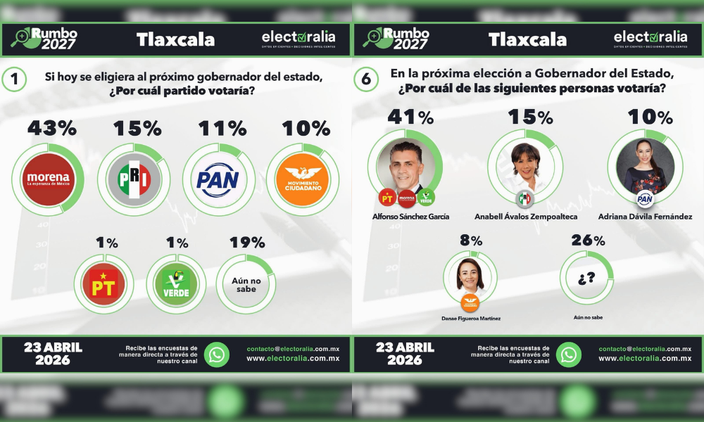 A menos de un año de la elección para gobernador, la encuestadora Electoralia reveló que Morena se consolida como la principal fuerza política en la entidad, al registrar un 43 por ciento de la intención de voto, reflejando una clara preferencia ciudadana por el partido guinda.
