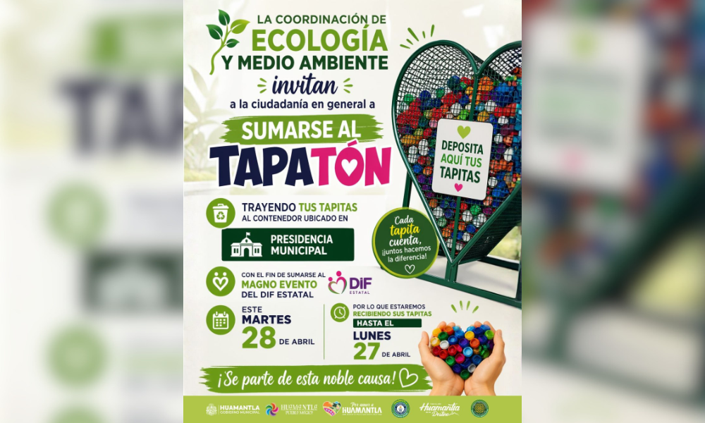 Con el objetivo de contribuir a una causa solidaria y fomentar el cuidado del medio ambiente, el Gobierno Municipal de Huamantla, a través de la Unidad de Protección al Medio Ambiente, llevará a cabo una campaña de recolección de tapitas de plástico.