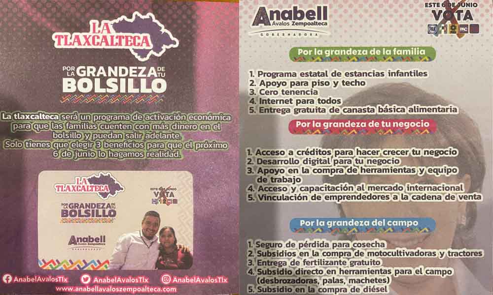 Denunció además que, de acuerdo a lo que han hecho saber los ciudadanos simpatizantes de MORENA, los promotores de la alianza Unidos por Tlaxcala, a la hora de entregar el plástico, no solamente piden los datos personales del posible beneficiario, sino que también les ofrecen beneficio, a través de 3 programas que se implementaría sí o sólo sí gana Anabell, y los apoyos prometidos se transferirían a los ciudadanos que voten por la alianza “Unidos por Tlaxcala”, lo que representará «grandeza para tu bolsillo”.