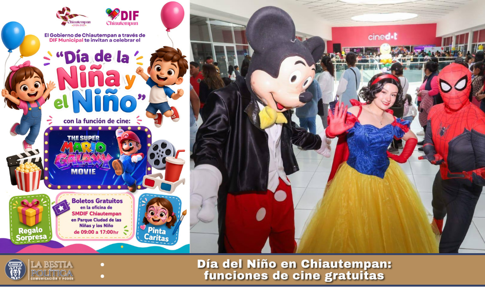 Como parte de esta jornada, además de la proyección cinematográfica, se realizarán diversas actividades pensadas para el disfrute de las y los asistentes, como dinámicas recreativas, espacios de interacción, pintacaritas y la entrega de un regalo sorpresa, en un ambiente que fomenta la convivencia familiar y genera momentos de alegría para la niñez chiautempense.