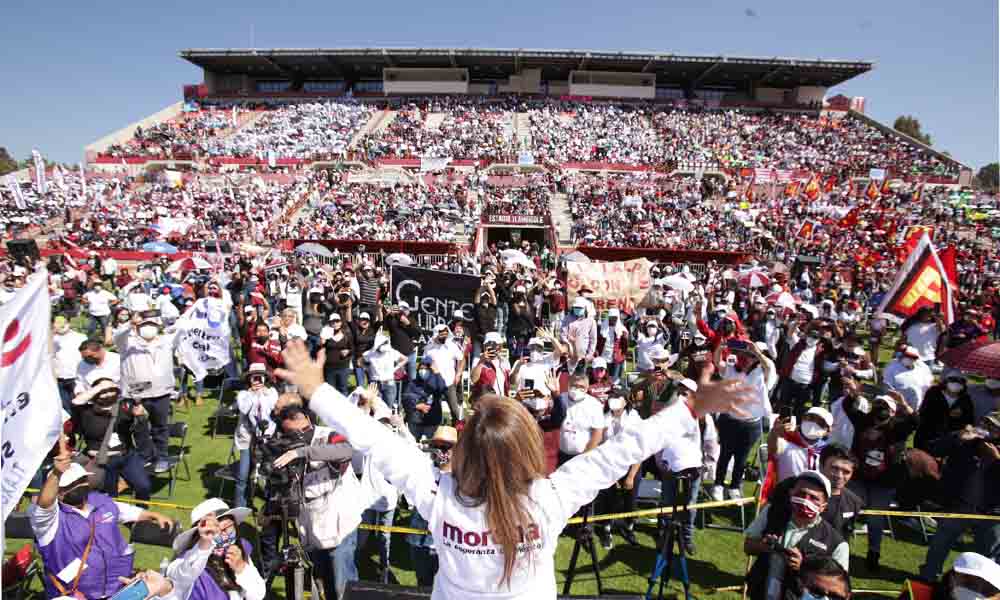 Por su parte, la candidata morenista dejó guardado en su buró del tocador el no hacer actos masivos, y mostró fuerza al atiborrar el estadio Tlahuicole.