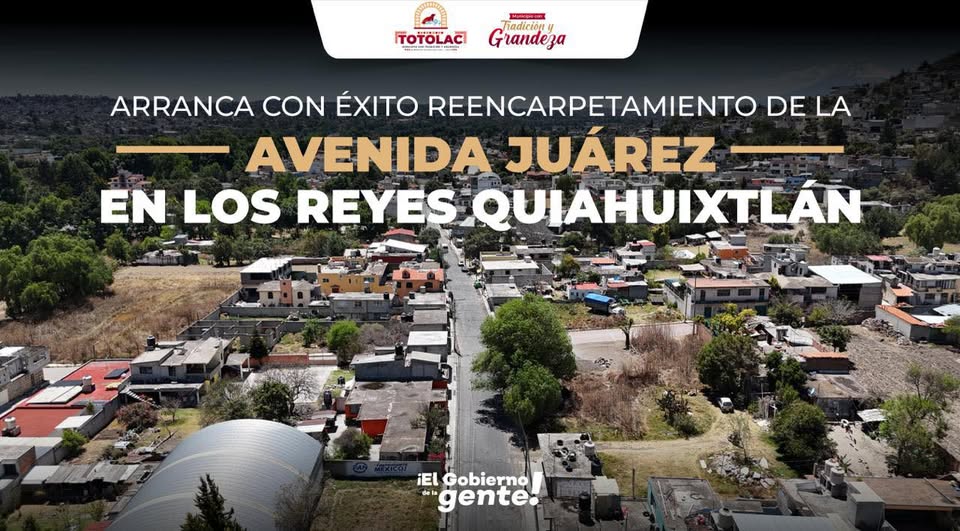 El Gobierno Municipal de Totolac 2024–2027 informa que han dado inicio los trabajos de reencarpetamiento sobre la Avenida de las 400 Familias, en su conexión con Avenida Juárez, en la comunidad de Los Reyes Quiahuixtlán.