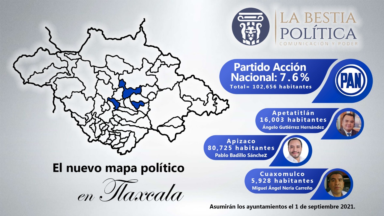 Vapuleados, demolidos y aturdidos quedaron los panistas después del seis de junio, pues un día después amanecieron sin haber ganado una sola diputación local, federal, la gubernatura, y solo alcanzaron los municipios de Apetatitlán, Cuaxomulco y Apizaco, por lo que gobernarán al 7.6 por ciento de la población.